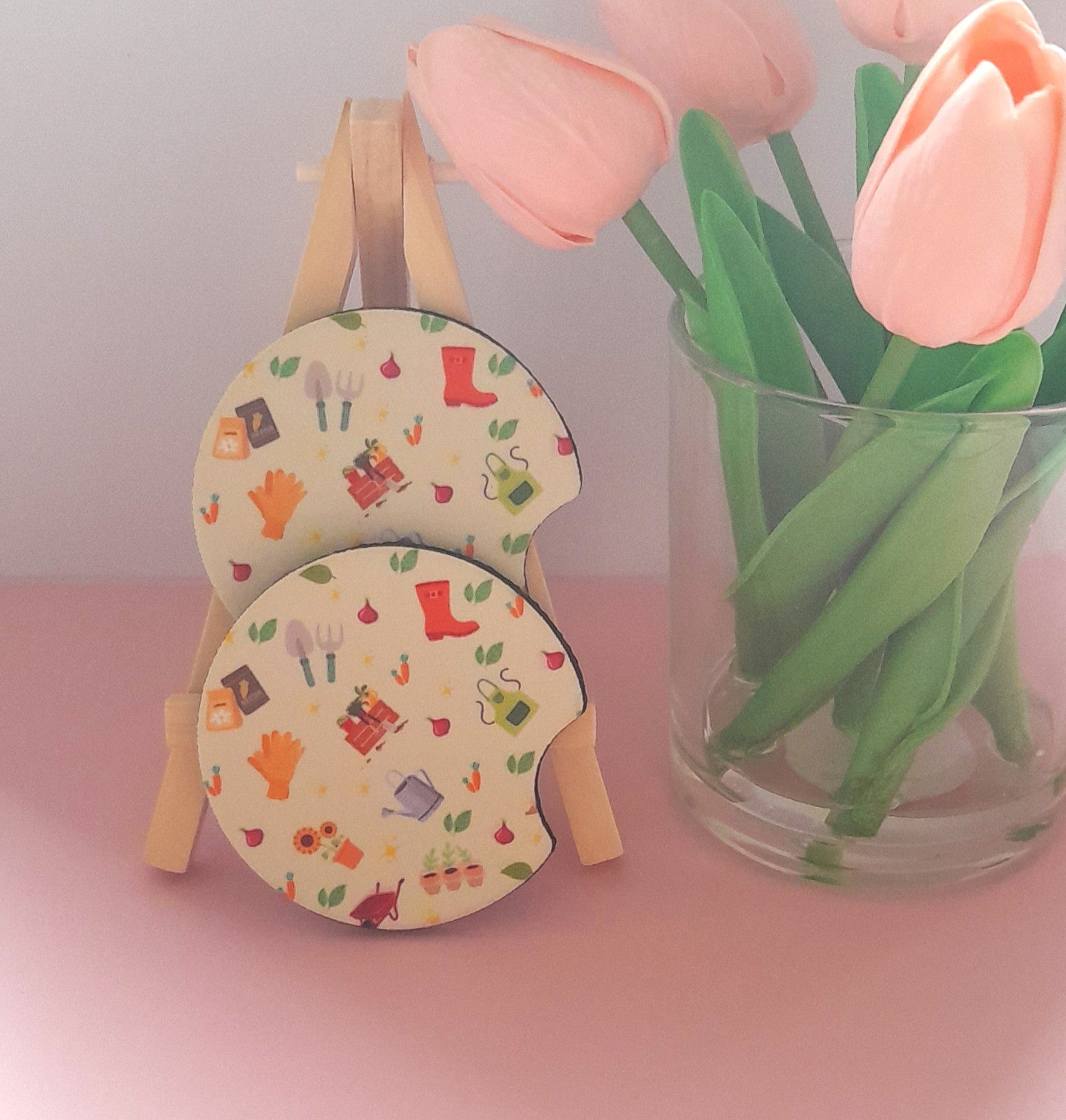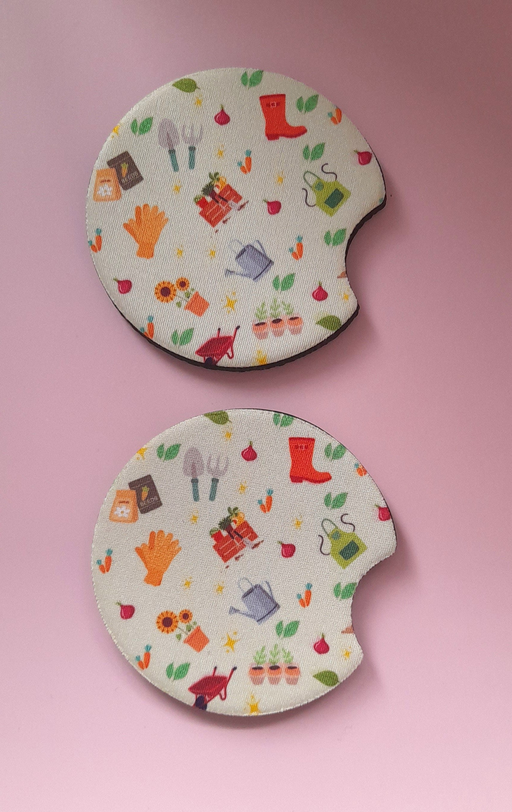 Set of 2 Premium Car Coasters – Cute Absorbent Drink Holders for Car Interior | Inspirational & Motivational Gift | Gardening