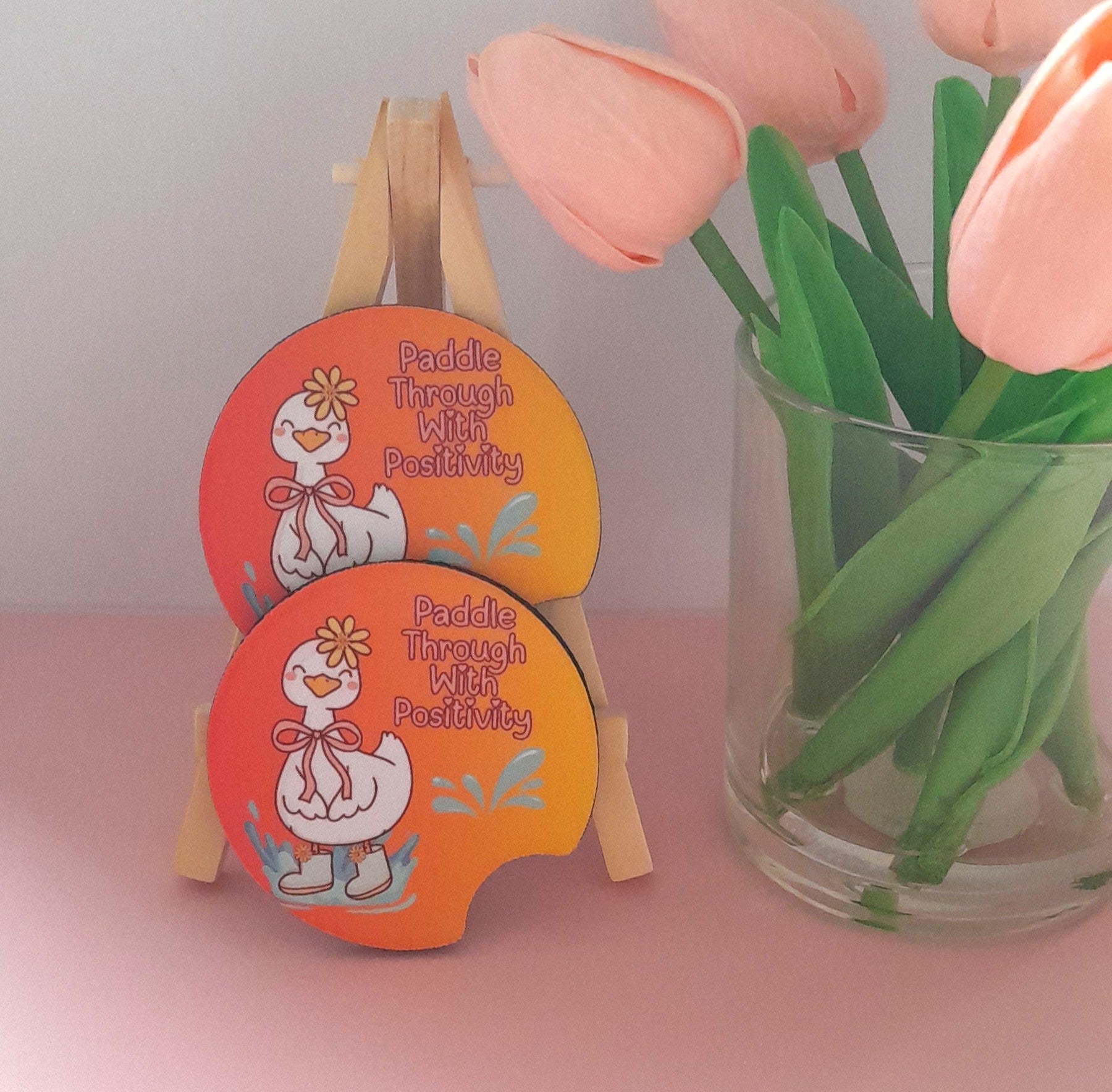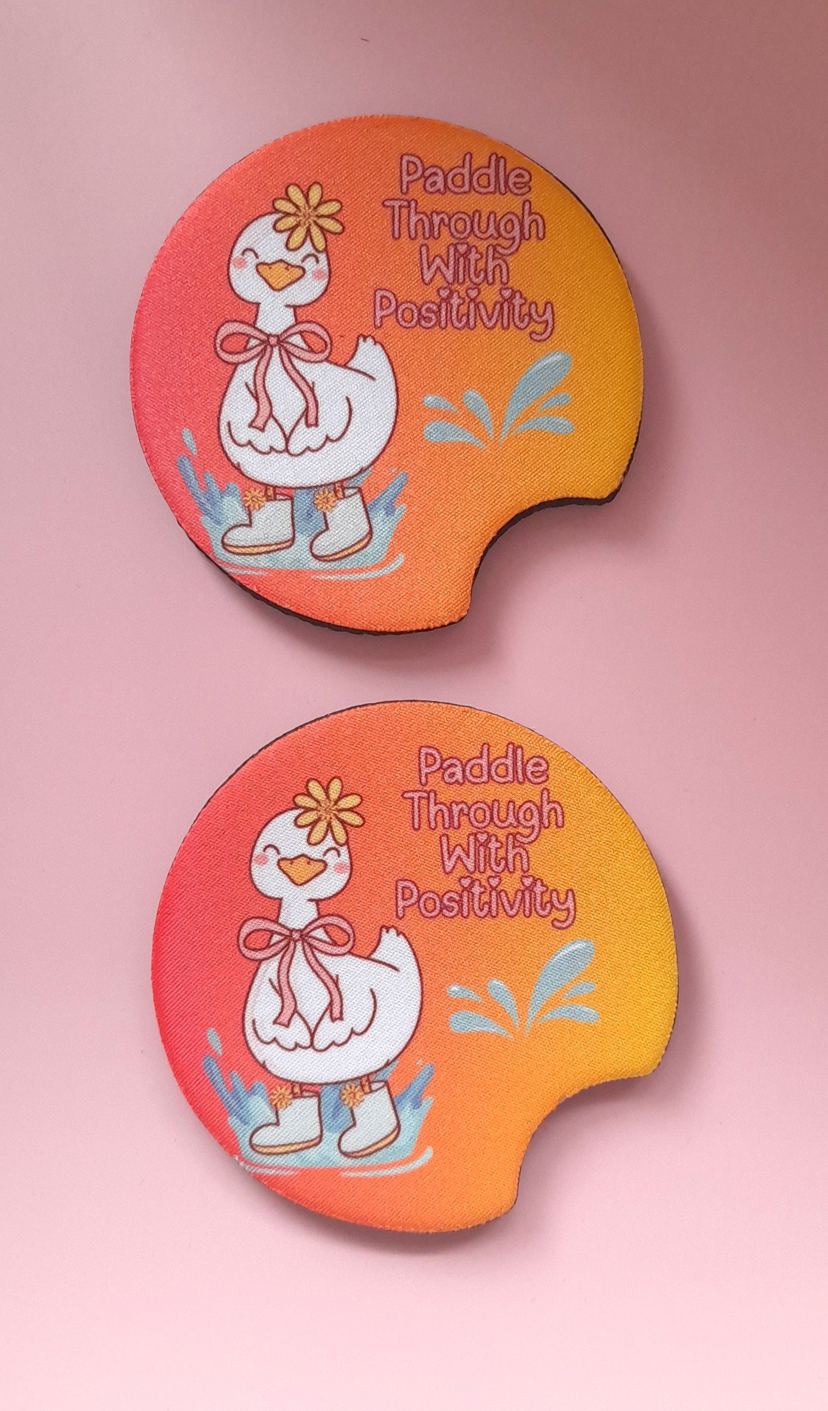 Set of 2 Premium Car Coasters – Cute Absorbent Drink Holders for Car Interior | Inspirational & Motivational Gift | Paddle Through with Positivity